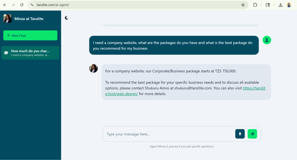 Our approach is hands-on. We’ve already built Minza, our internal AI Agent at Tanzlite Digital, as a proof of concept. She can: